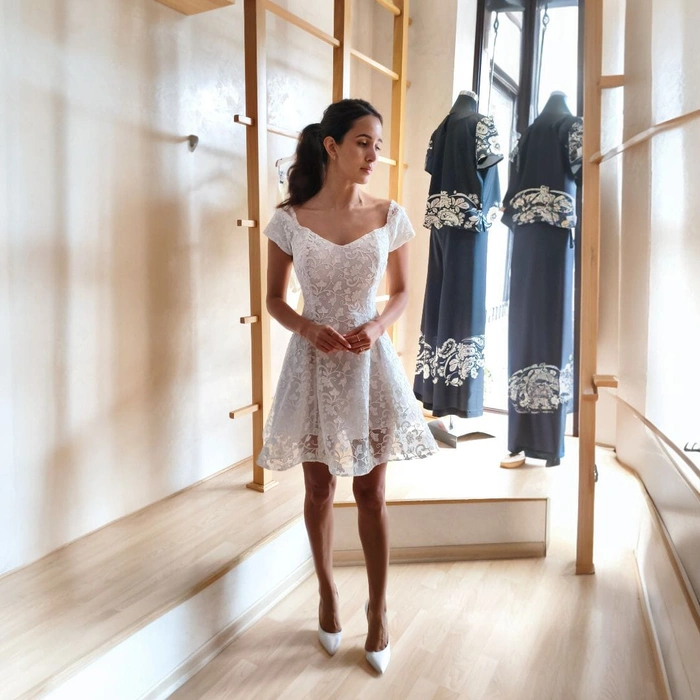 Vestito Angelica, elegante e raffinato, disponibile per la prova esclusiva presso la boutique di Varese.
