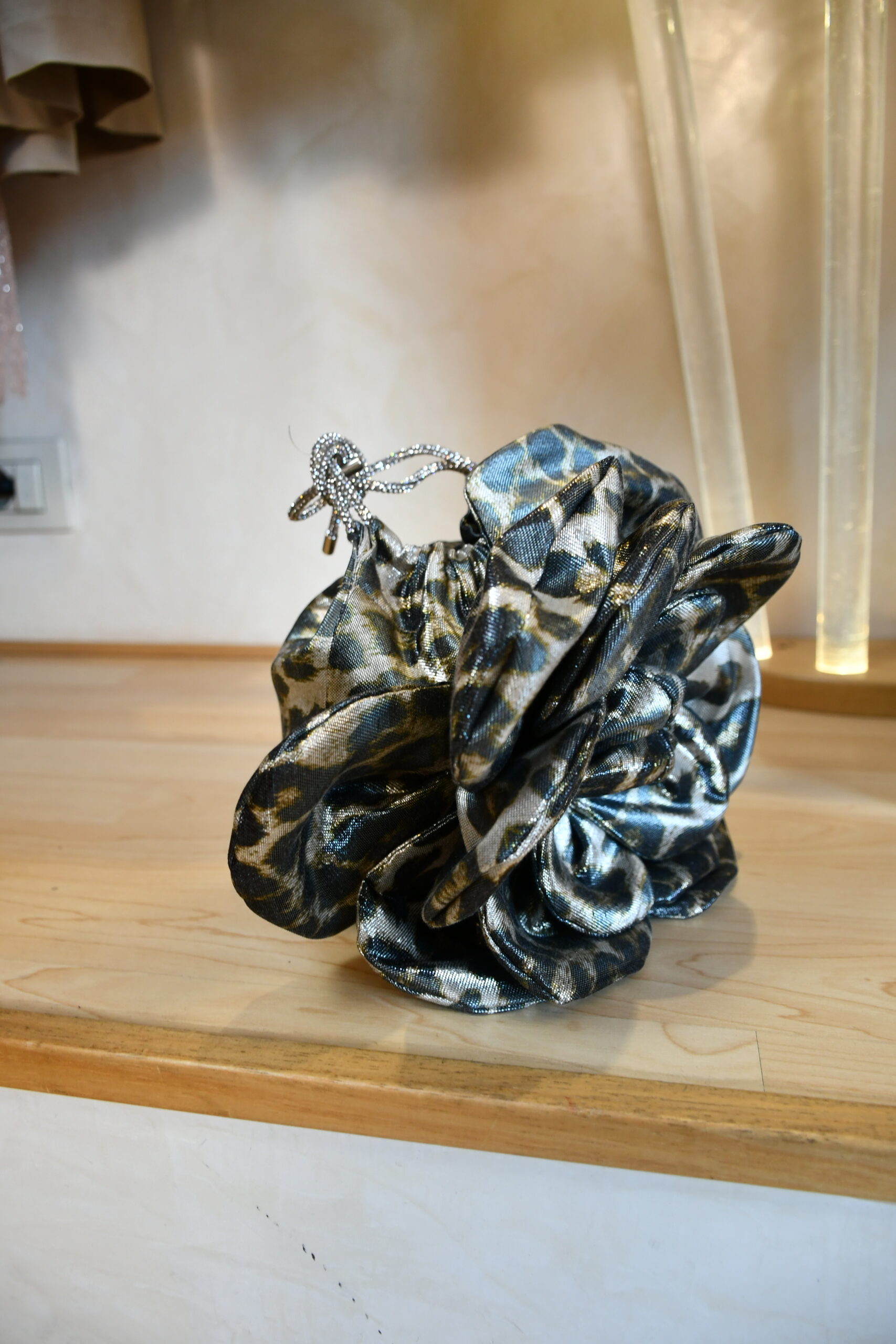 La pochette maculata con coulisse è l’accessorio ideale per chi vuole aggiungere un tocco audace e raffinato al proprio look. Realizzata in raso stampato animalier, si distingue per il suo design morbido e la struttura versatile. Il sistema di chiusura a secchiello con coulisse dona praticità e stile, rendendola perfetta sia per eventi serali che per uscite quotidiane più chic.